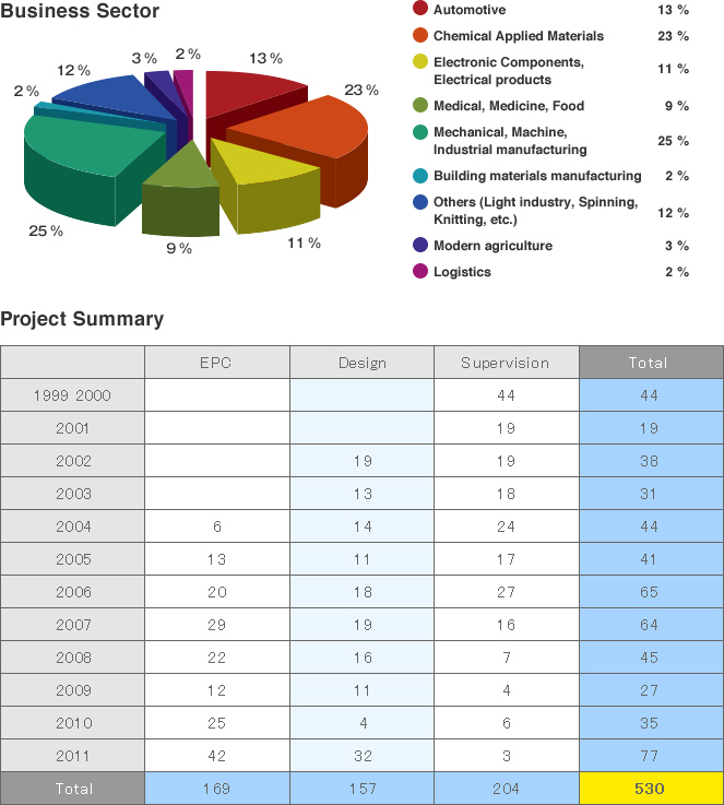 With clients' support, Kaiser successfully completed more than 500 foreign-invested new factory projects in China. More than 80% of projects are for Japanese clients who have high requirements on project quality. From this point of view, we may evaluate the importance of service provided by Kaiser. Additionally, the factories we built are in many different industries, such as manufacture, food processing, pharmaceutical, agriculture etc...