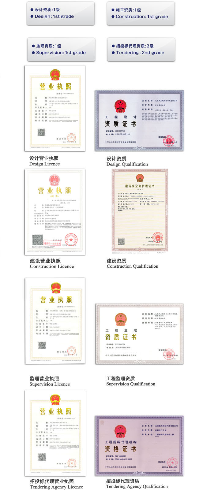 凱杰公司發揮中國當地企業的優勢,擁有外資建筑企業很難單獨取得的建設工程資質。 并且Kaiser引進了國際標準的【ISO9001】質量保證體系,構筑【Kaiser獨有的質量管理體制】、達到【員工質量意識提高】【業界動態把握】【產品和服務魅力提高】的目標。