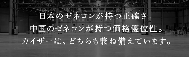 「中國の建設企業(yè)はコストは安いが、品質が不安だ」という聲は、確かに日本、歐米のお客様からよく聞きます。しかし、私たちは、創(chuàng)立以來、日本の優(yōu)れた管理方式の導入による品質確保と、中國獨資企業(yè)の強みである価格競爭力を両立してきました。なぜなら、それがお客様が最も求めていることだからです。カイザーが選ばれる、その理由は、矛盾を當然の使命としてお客様のために行っているからなのです。